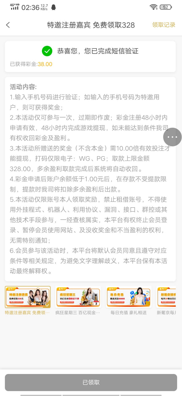 新用户自己去碰瓷特邀,自助验证特邀,禁止充值,具体自测吧。