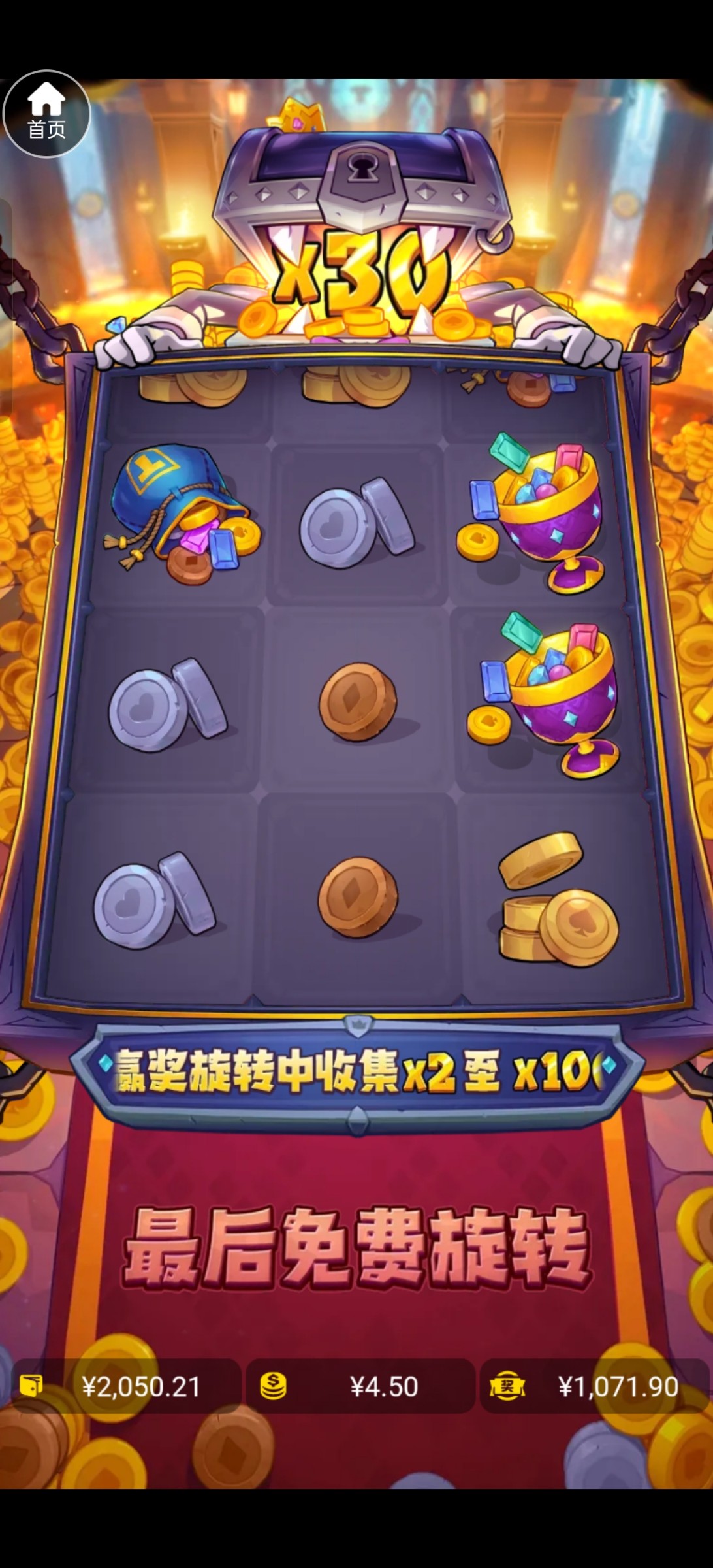 玩什么给什么,杀到200去玩宝藏大冒险从200一路打上2.1k,然后去玩金球,啦几下连进3次免费,到3.5k,