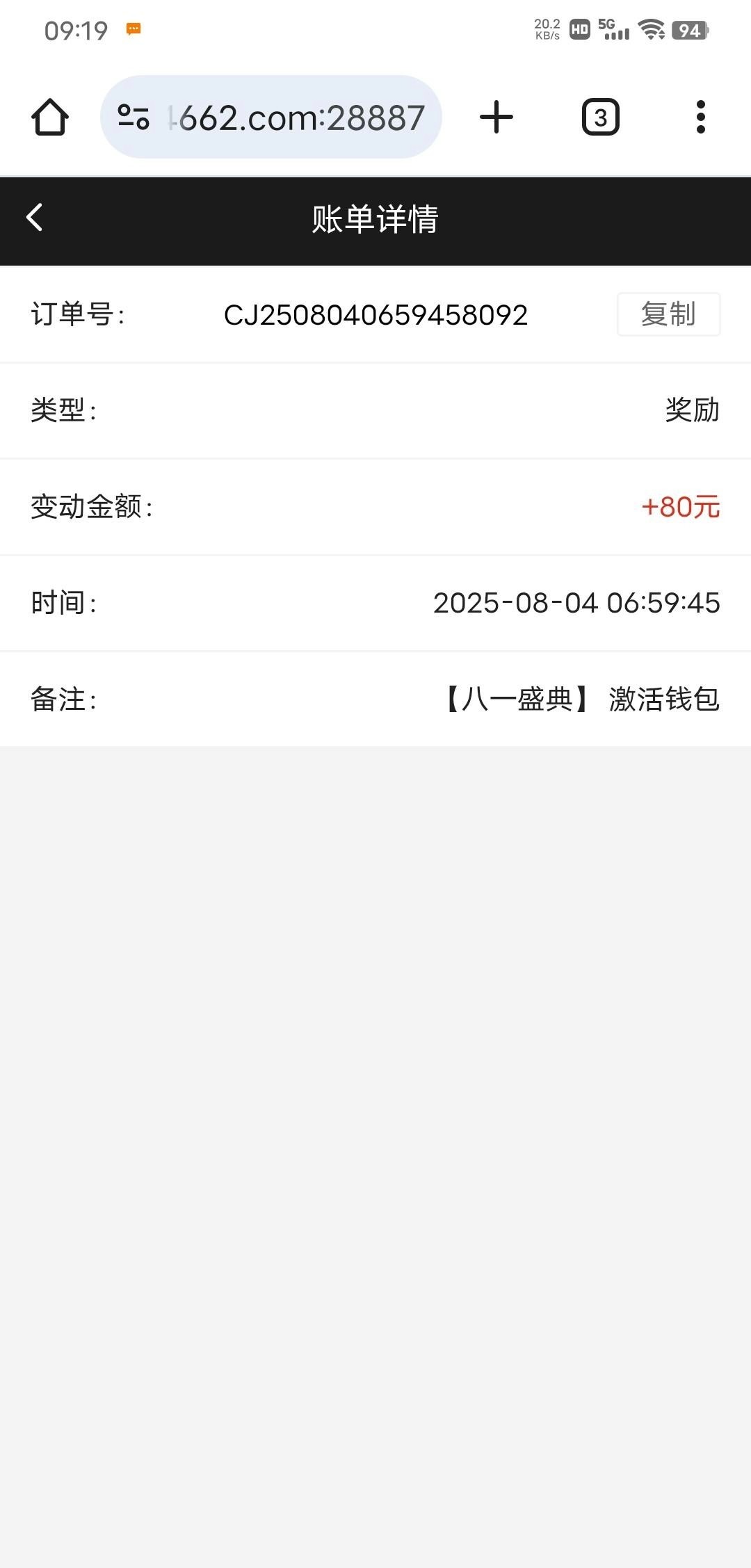 【662】八一彩金派发