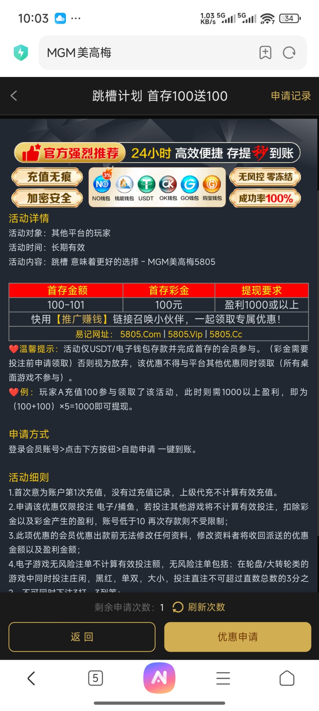 网站在图片上找,懒得复制了,1+1无流水要求,满1000提现,上限规则问客服,必须电子钱包充值,充值白菜被黑不管