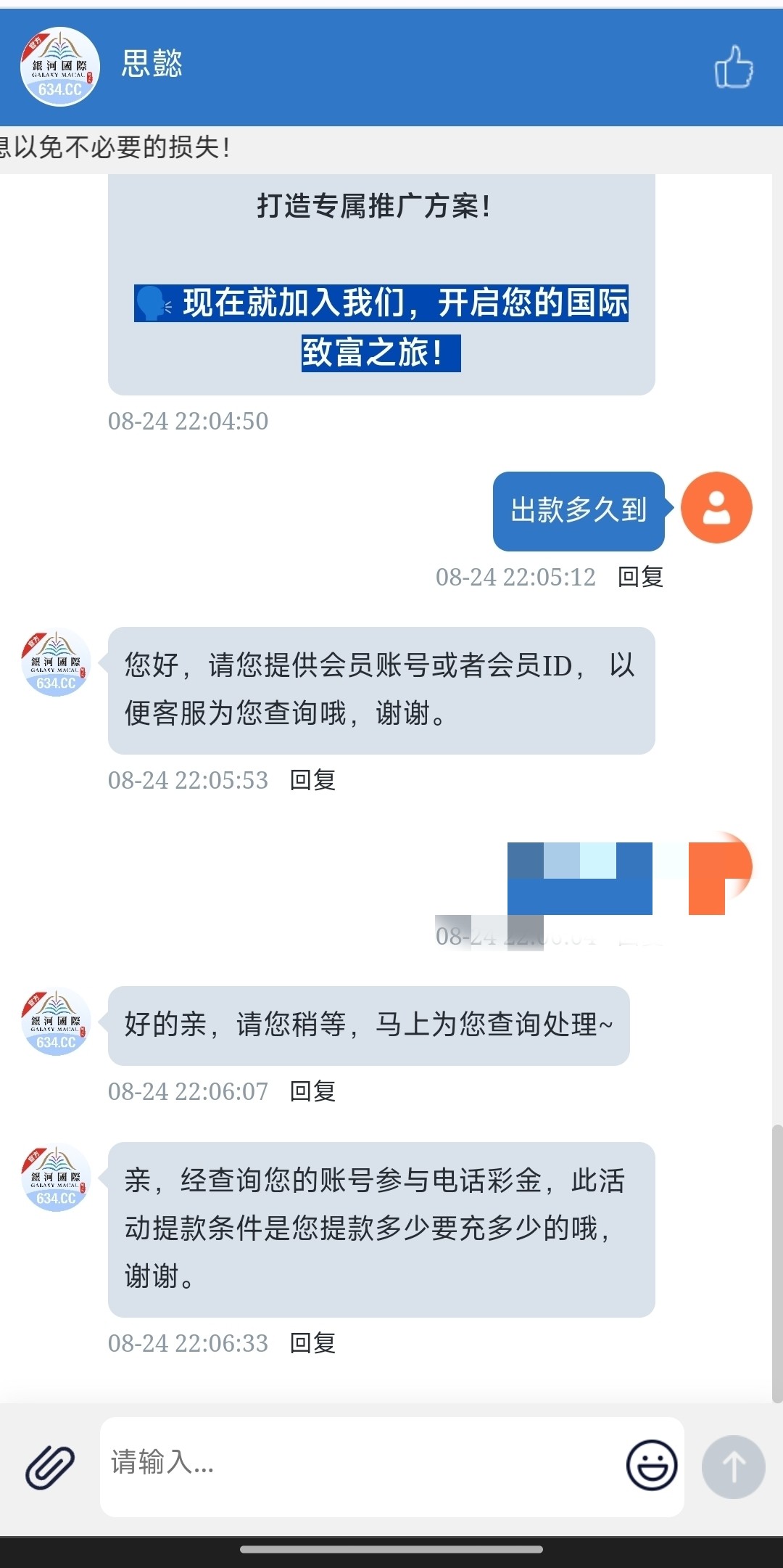 电话彩金打出来了提现一直显示出款中,问客服说要充值