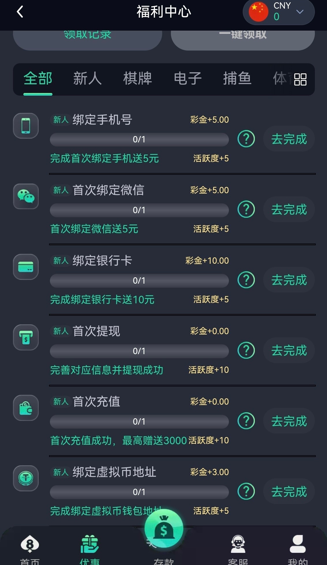 新用户注册好去完成福利页面的任务