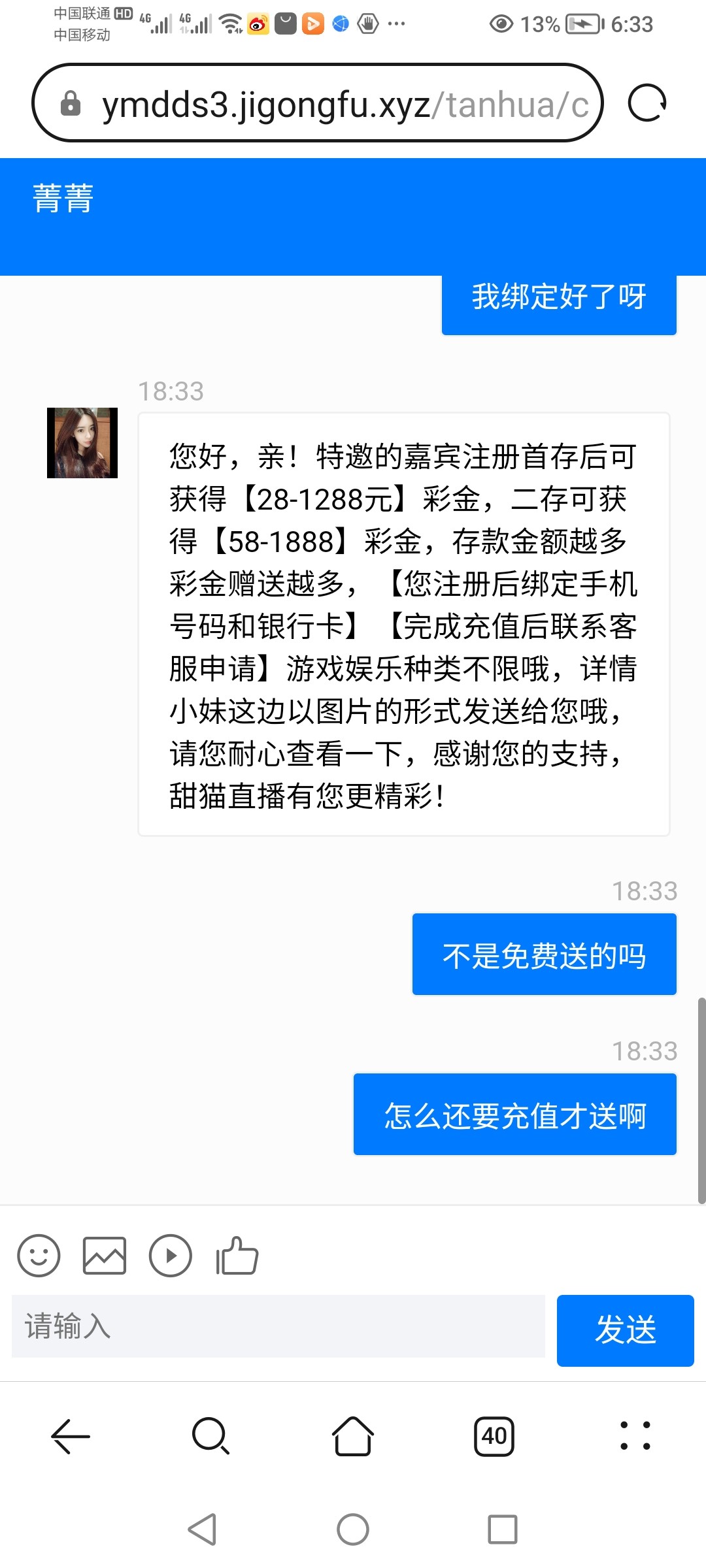 特邀碰瓷:先去看看有没有下方短信,有的注册绑卡找客服发手机号申请特邀彩金,没有也可以去碰瓷试试,具体自测吧切记勿充值。