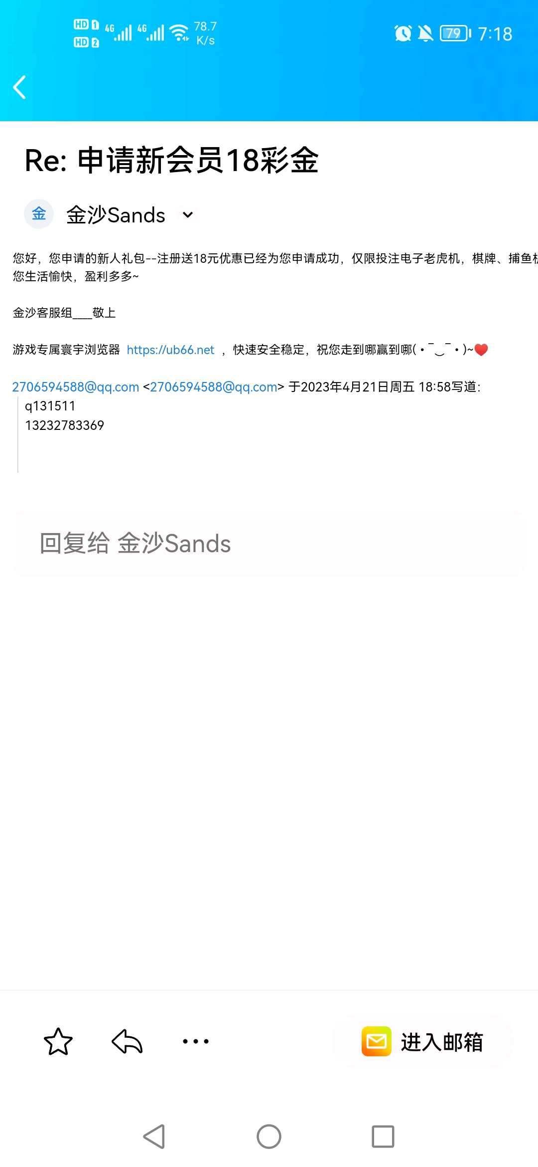 新用户注册绑卡手机号 发送邮件申请18彩金,亲测领到18,